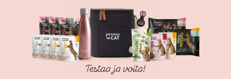 Tekemällä testin voit osallistua arvontaan ja voittaa upean PrimaCat-tuotesetin. Tuotesetti sisältää PrimaCat-kylmälaukun sekä termospullon kesäisiä piknik-päiviä varten. Kylmälaukku on täytetty maistuvilla PrimaCat-tuotteilla kissasi parhaaksi. Palkinnon arvo on noin 50 euroa. Arvomme kaksi tuotesettiä joka kuukausi kilpailuaikana.